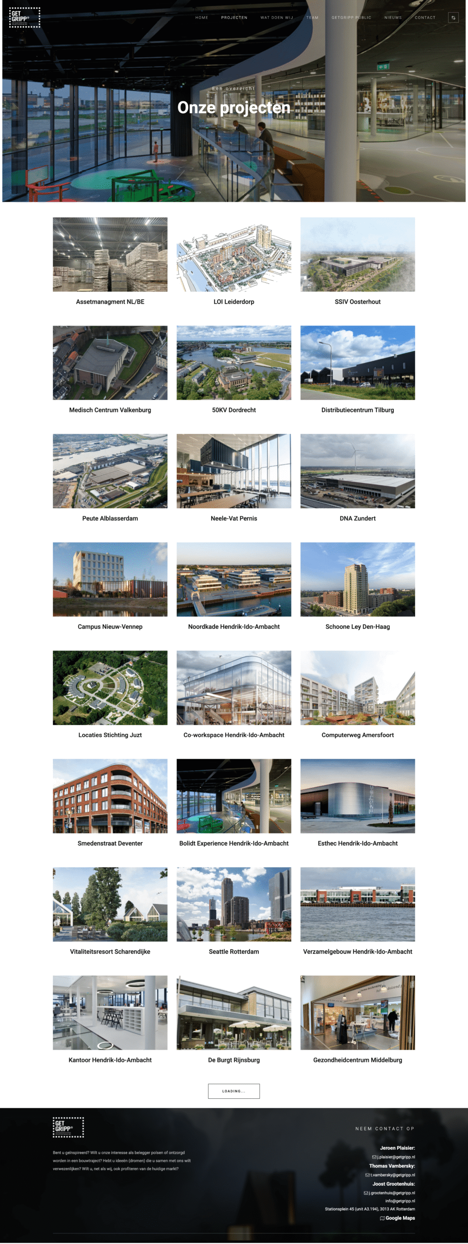 De website is opgebouwd om niet alleen diensten helder te presenteren, maar ook om de meerwaarde van het bureau zichtbaar te maken voor potentiële opdrachtgevers. Daarnaast is er ruimte voor het tonen van voltooide projecten en actuele updates via een blogmodule, waarmee GETGRIPP zich ook inhoudelijk kan positioneren in de branche.